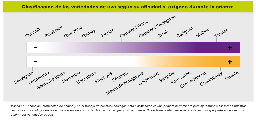 - – Tolerancia al oxígeno de la variedad de uva: muy tolerante, reductora